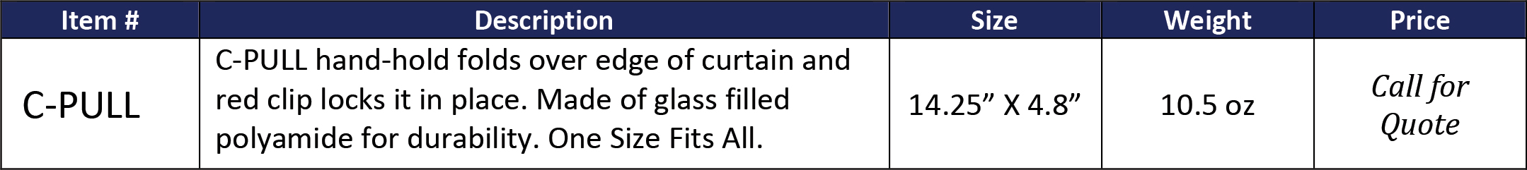 The C-PULL clamps onto any type or style of curtain. Provides a “Hand Target” for patients, caregivers and visitors. Easily wiped down and disinfected. Infused with Micrillon® providing built-in rechargeable antimicrobial product protection.